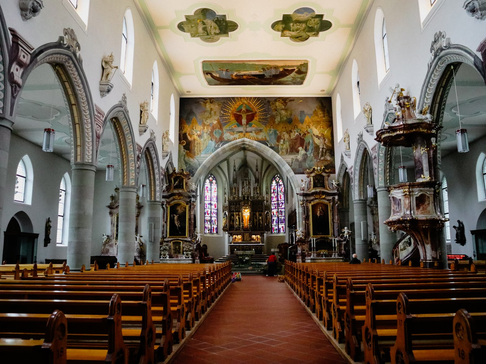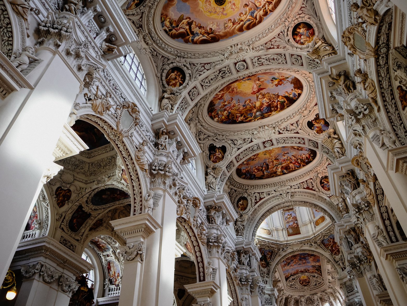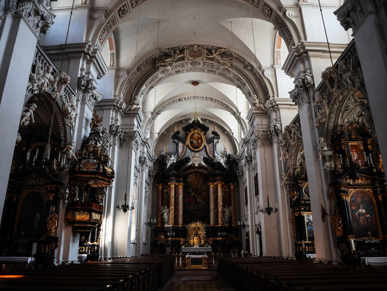 L’intérieur de l’église Saint-Michel de Passau, très étonnante par ses contrastes très intenses.