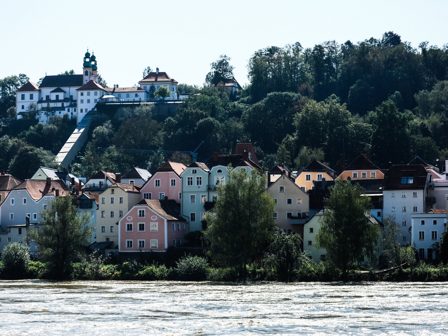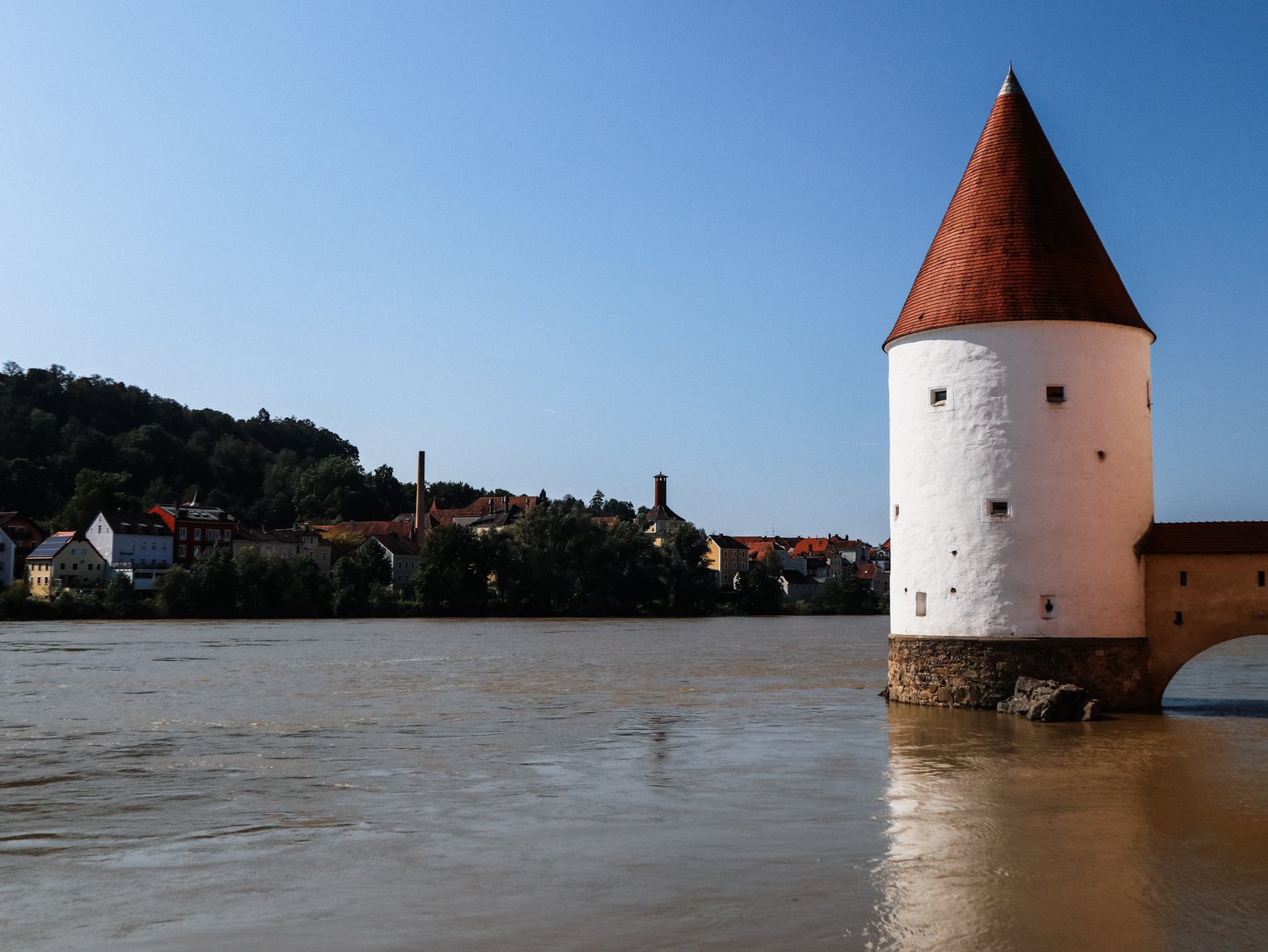 Nous voilà à Passau ! Comme à Dresde, le niveau de l’eau est très anormalement haut suite à la tempête et certains chemins dans la ville étaient même inondés.