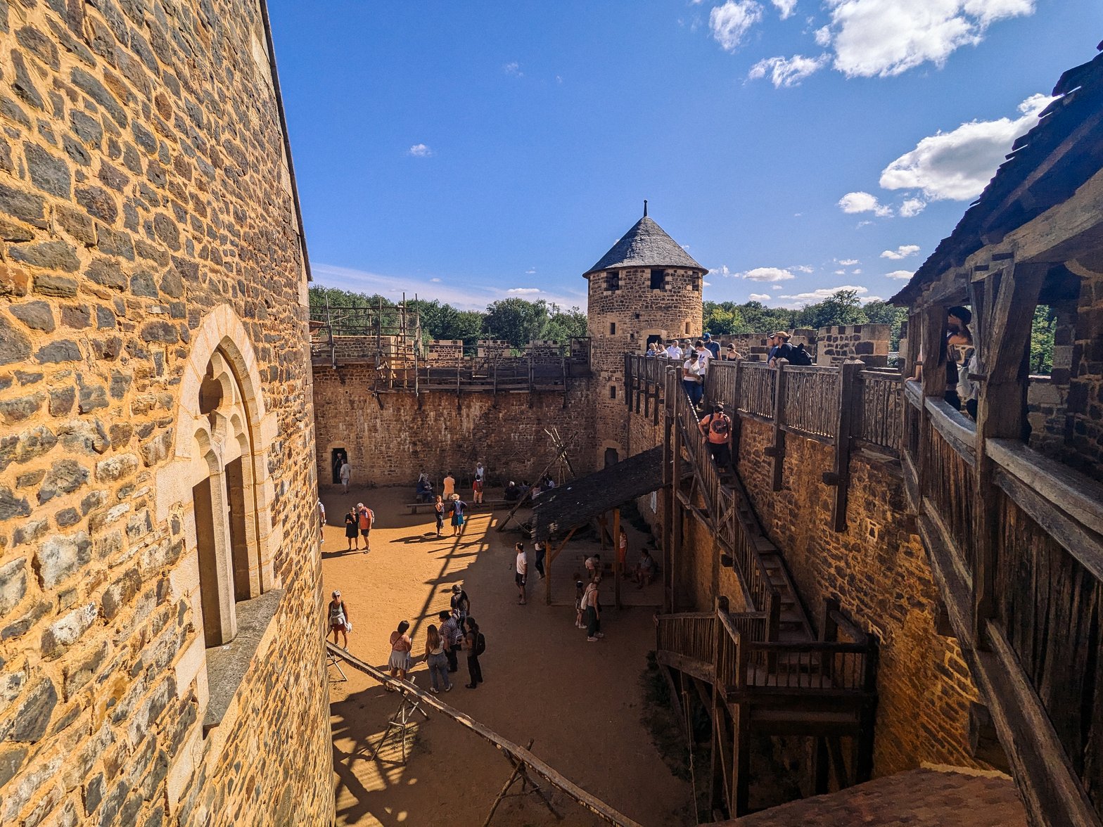 Depuis bientôt 30 ans, plusieurs centaines de personnes travaillent à la construction de cet édifice en employant les méthodes de l’époque moyenâgeuse (mais avec le droit du travail d’aujourd’hui, tout de même). Pas juste pour le kiff hein, l’idée c’est aussi et surtout d’en apprendre plus, justement, sur la façon dont étaient conçus les châteaux-forts. Une sorte d’expérience de recherche historique grandeur nature.