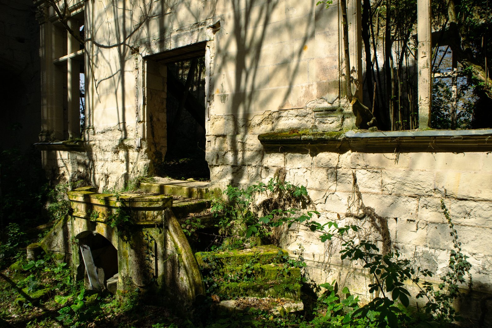 En ruines suite à un incendie au milieu du XXe siècle, la nature a complètement repris ses droits ici.