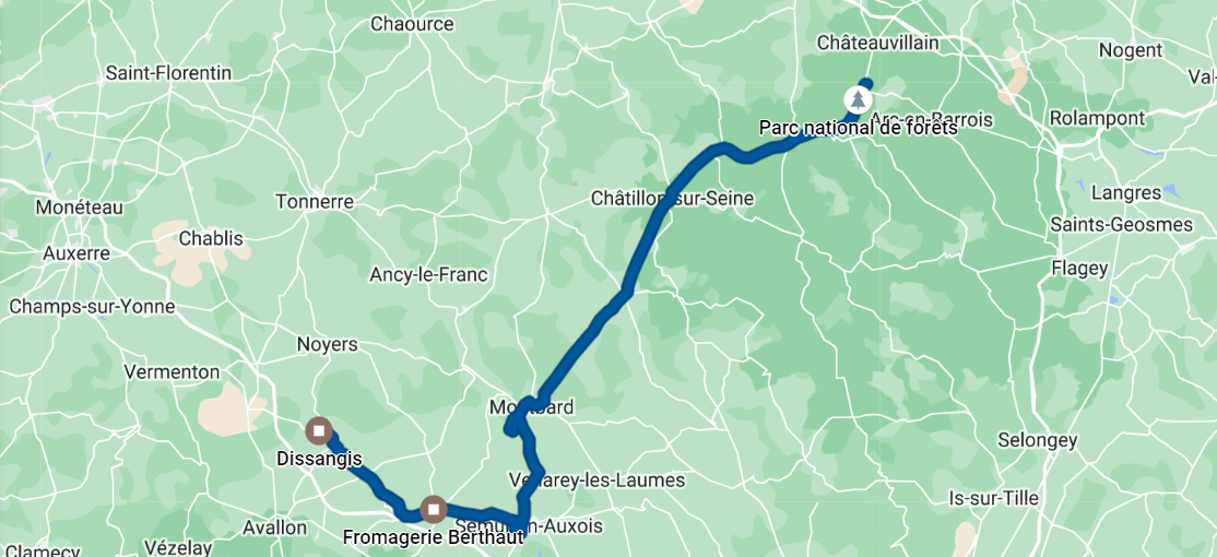 Parce que jusqu’à fin juin nous avons pas mal d’allers/retours à faire entre la Bourgogne et Paris (concerts, tatouages…), nous décidons de continuer à explorer les environs bourguignons. Cette fois, nous allons vers le Parc national de forêts 🌲 Petite escale à Montigny-sur-Aube pour une balade près du château (fermé). Nous ne nous attardons pas quand trois hommes – à mon avis alcoolisés 🥴 - nous apostrophent de loin pendant qu’ils urinent sur la façade de la salle des fêtes. On presse le pas jusqu’au premier inconnu qui, avec son béret et sa canne, nous rassure malgré lui. Un bonjour échangé avec une habitante et un salut à un chien curieux plus tard, on grimpe dans Chocobo et dit adieu à ce patelin avant de reprendre notre route.