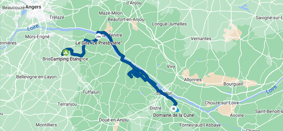 On a mis le réveil pour retourner au Campervan voir Edouard et Romain. Avant de partir, un petit café s’impose. Clélia met en route le gaz et… comme par magie, la pompe à eau se remet en marche 💧 Ça n’a absolument aucun sens car ce n’est pas lié mais la coïncidence est troublante. Une fois le café englouti, nous partons tout de même pour Brissac. Petite inspection du véhicule, rien de particulier, pas d’explication. Mystère et boule de gomme (j’adore cette expression). Ils en profitent pour faire une petite visite avant de repartir pour leur atelier à Roncq (à 7h de route). Après leur crevaison de pneu à l’aller, j’espère que ça a été pour eux !