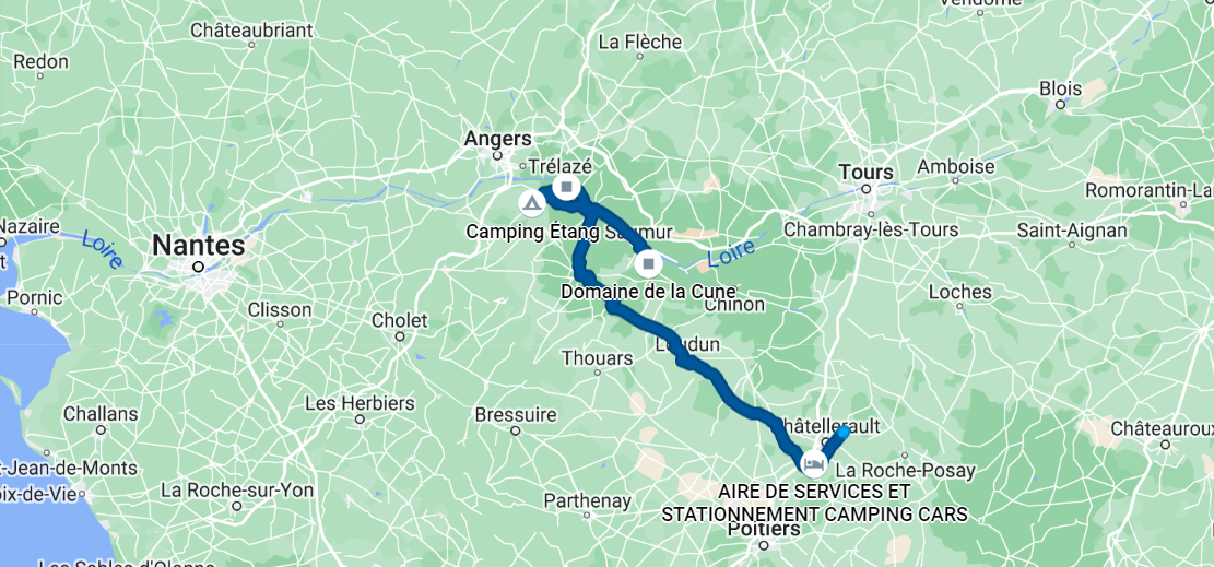 Nous passons par les bords de Loire que Clélia trouve (à raison) sublimes 🤩 Elle s’amuse à pointer du doigt toutes les maisons qu’elle veut acheter. Gros crédit en vue. On cherche un « spot sauvage » (= un endroit sympa, dans la nature, pour passer la nuit et être au calme) dans le coin mais ils sont pris d’assaut. Sinon, parfois, sur la route, je mets en marche la vidéo de mon téléphone 🎬 Cela nous a offert un moment assez cocasse que je vous partage… Alors que Clélia avait baissé sa fenêtre de moitié pour prendre des photos, j’ai appuyé sur la commande pour la baisser davantage pour lui rendre service. Problème : elle s’était appuyée dessus. Le reste appartient à l’Histoire (vous pouvez activer les sous-titres).