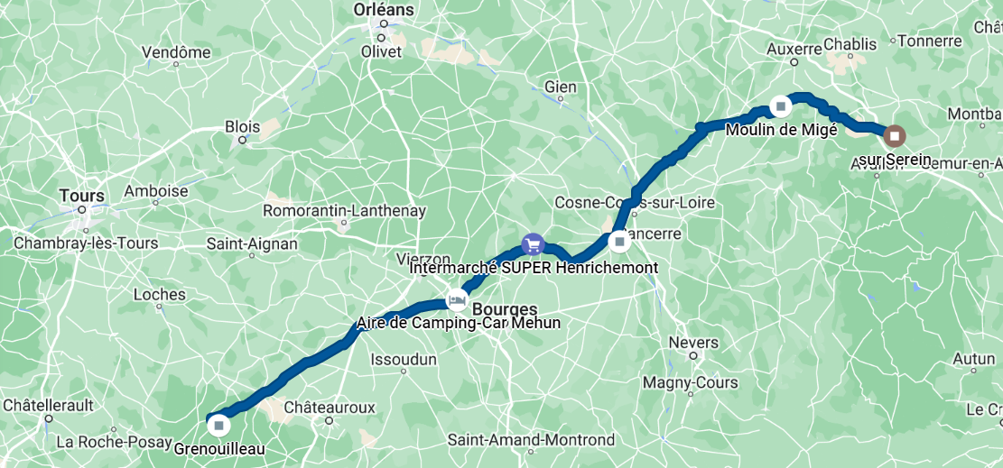 Entre l’Yonne et Paris. Plusieurs trucs à faire qu’on avait prévu avant de partir. Petite visite chez le garagiste 🔧 pour le Chocobobo. Un tour à Décathlon pour des chaussures de rando 🥾 des jumelles 👀 et des talkies walkies…