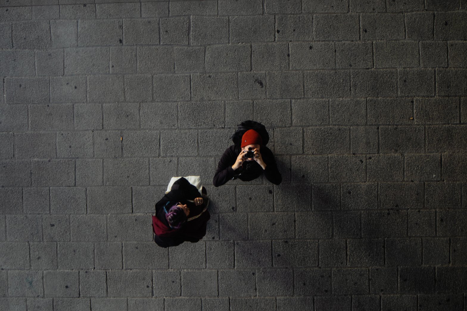 Selfie à l’ancienne avec un jeu de miroir sur la place du Vieux-Port.