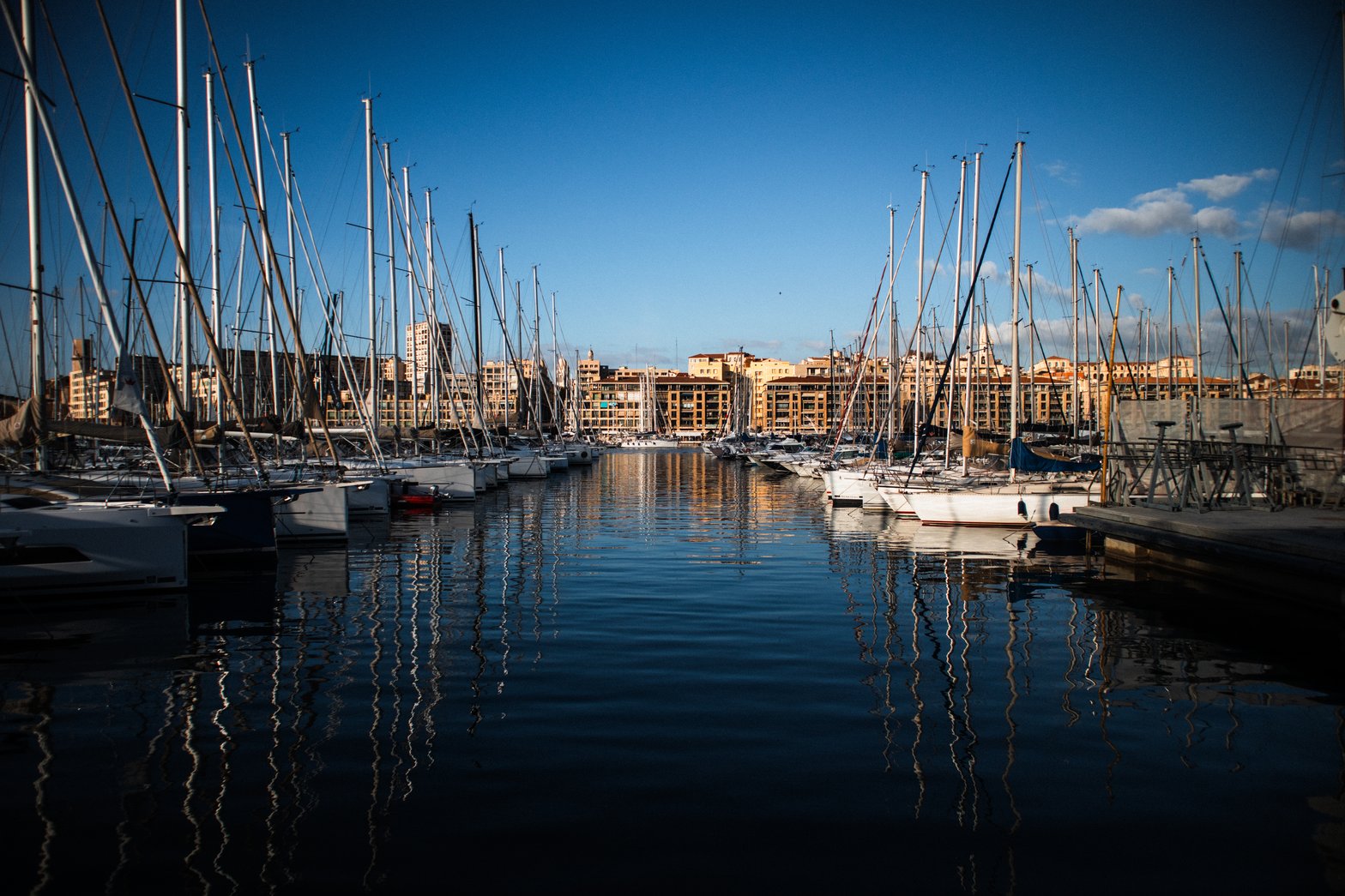 Près du MUCEM, on s’installe pour contempler un très beau coucher de soleil.