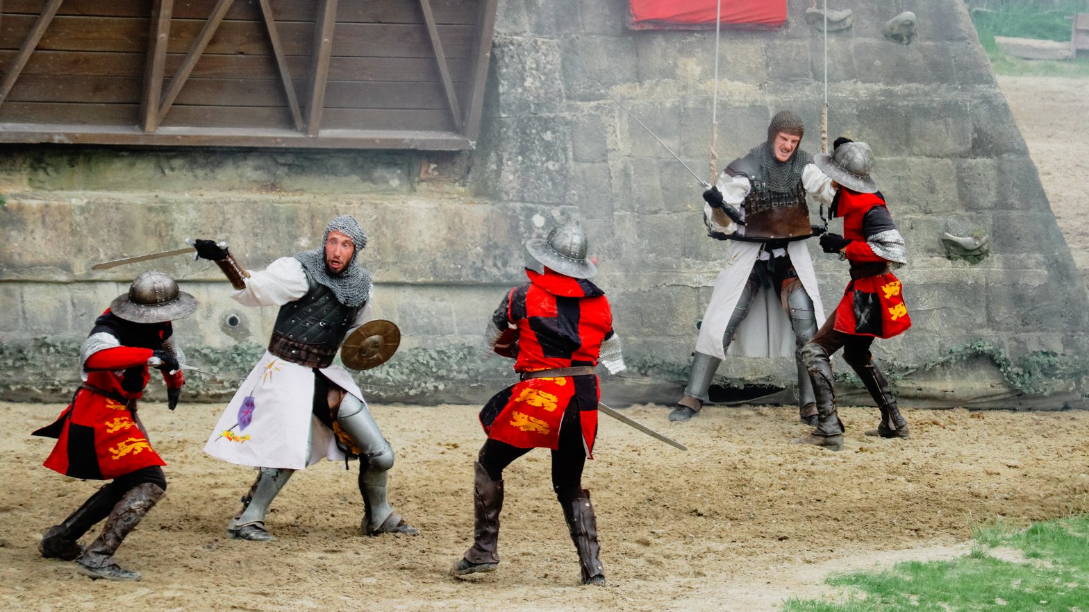 Allez lààà, baston baston baston ! Si je me souviens bien, c’était les gentils copains de Jeanne d’Arc contre les méchants anglais pas beaux. Attention hein, tout n’est pas à jeter, mais ça suintait beaucoup le manichéisme très orienté. J’avais aussi en tête l’article “Le Puy du Faux” du journal Le Monde d’il y a quelques années, donc j’étais peut être un peu biaisé… Bref, c’est cool, allez y pour vous amuser et voir des spectacles sympas, pas pour réviser votre bac d’Histoire.