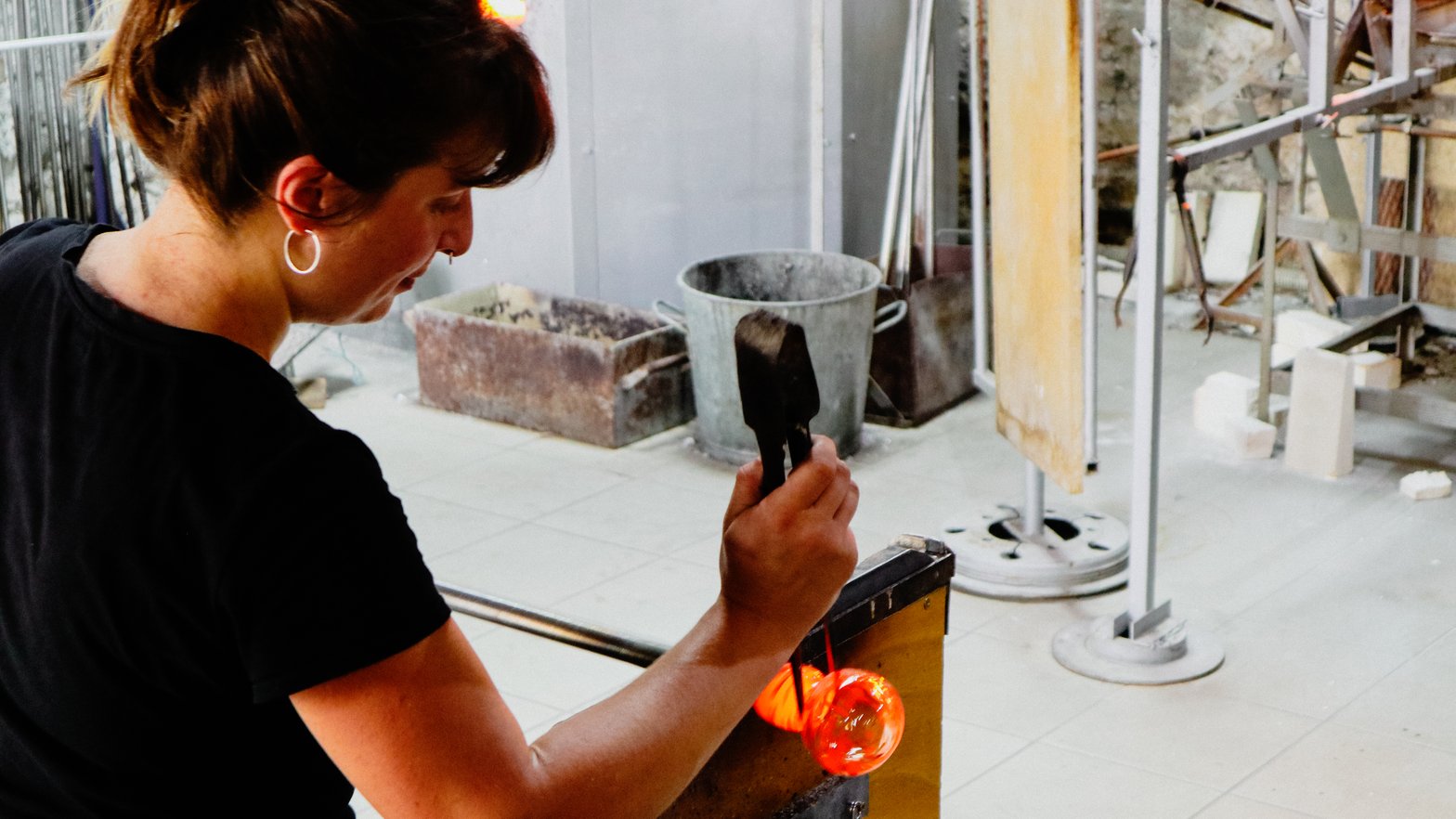 Suite à la visite d’un mini musée du vitrail, on a été voir une souffleuse de verre en pleine action.